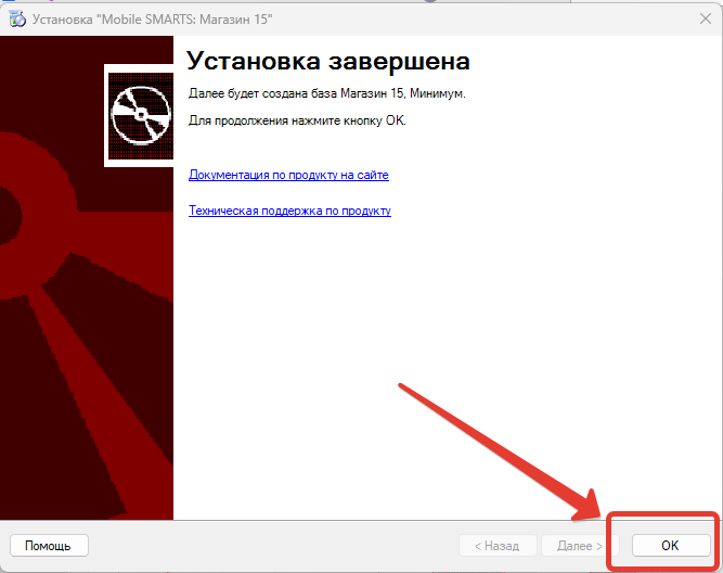 Когда установка будет завершена, нажмите Ок в мастере установки.