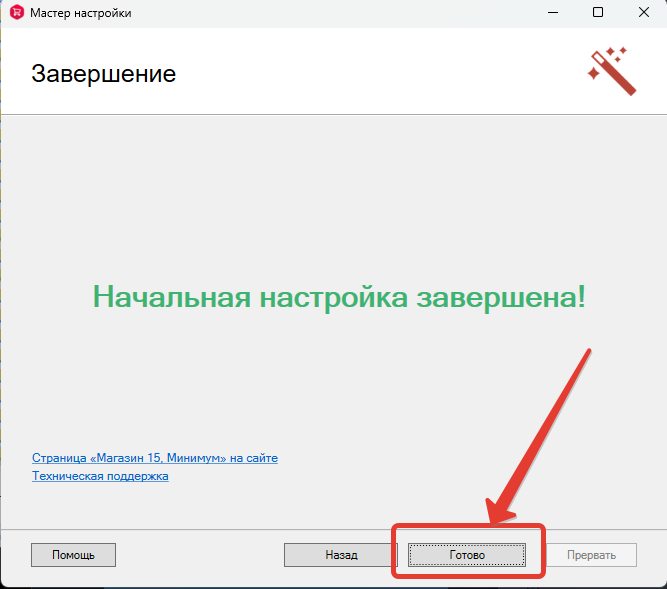 Нажмите Готово на странице с сообщением "Начальная настройка завершена!"
