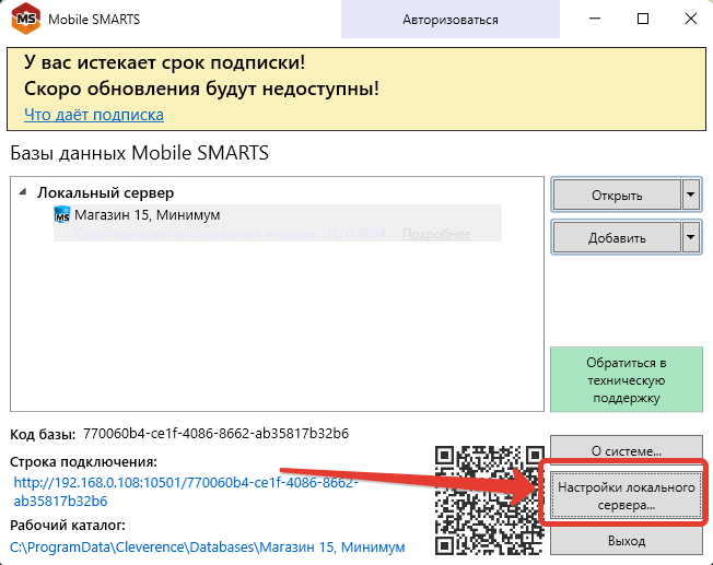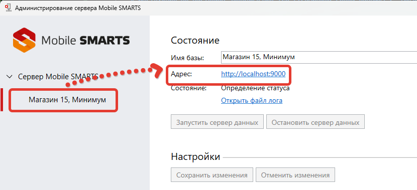 В Mobile.Smarts перейдите в раздел Настройки локального сервера...